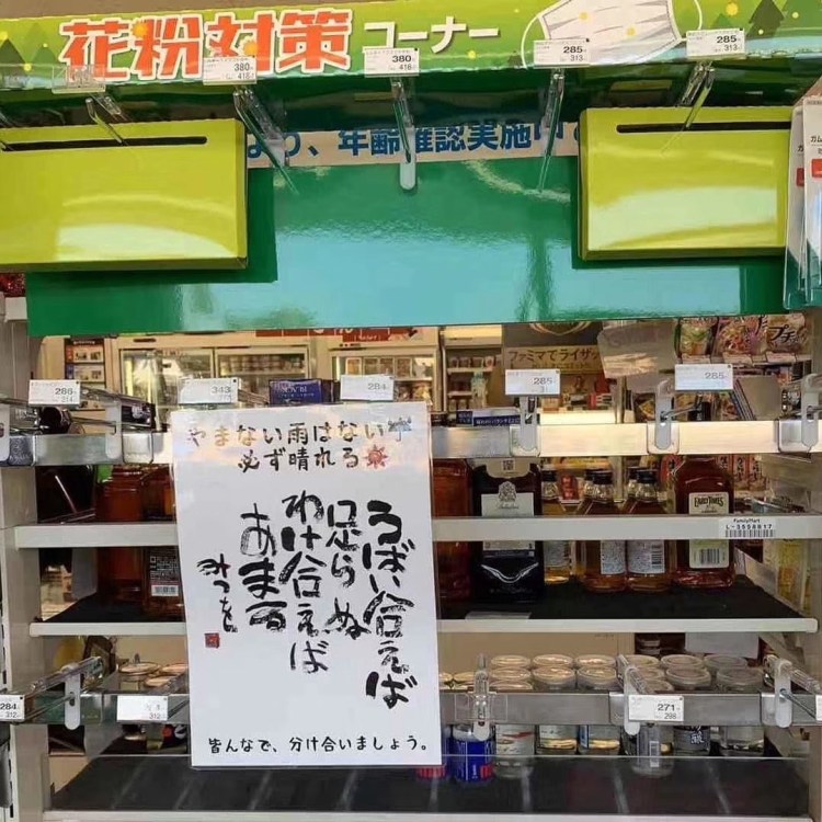 日本的一個小縣城的口罩也斷貨了。工作人員在空空的貨架上貼了個字條,很有意思: