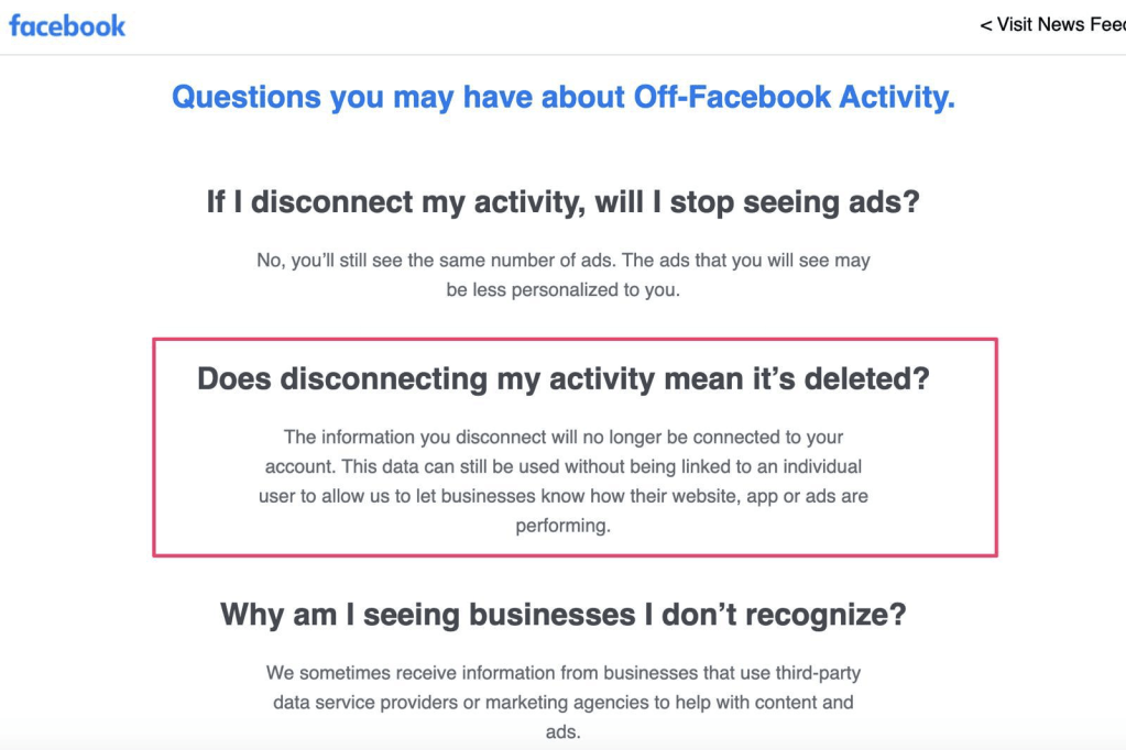 取消這個setting 並不是opt-out (對他們知道你的訊息而言),(或者直接講對你有任何益處),Off-Facebook Activity 只係你唔再知道些活動而已。因此,感覺到值得去談一談這個!
