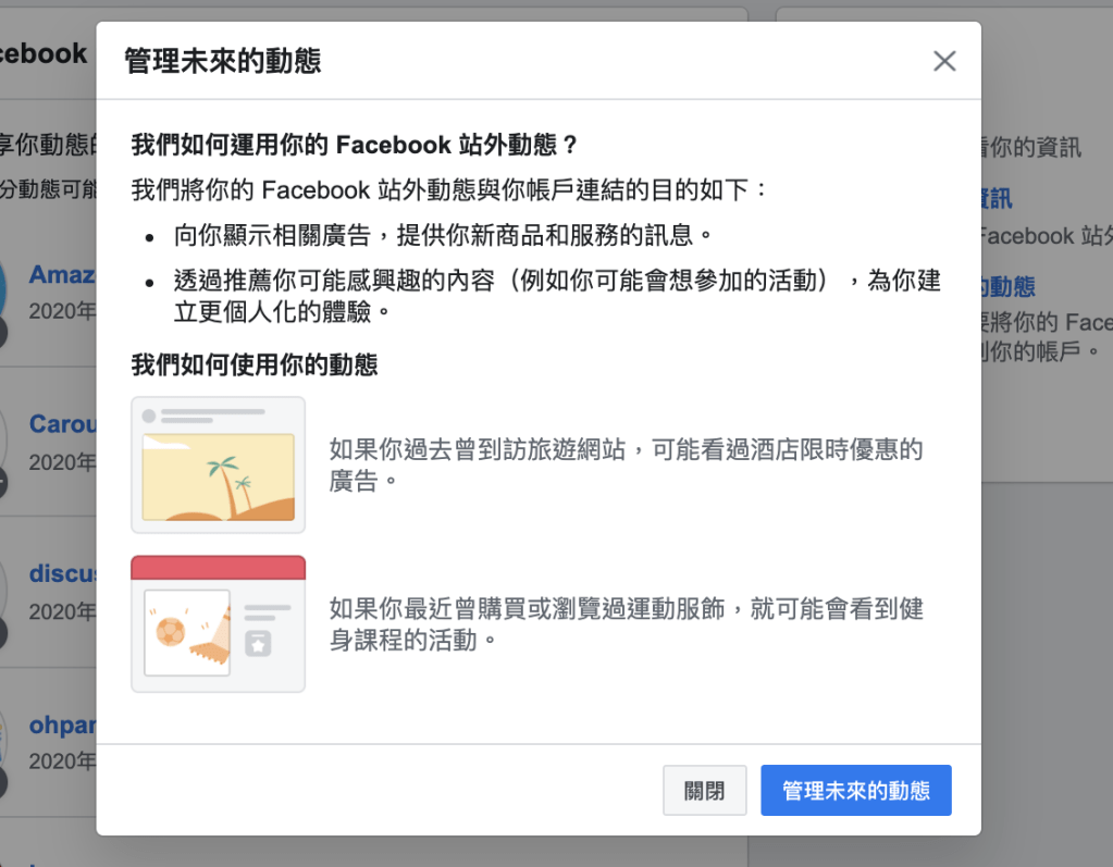 Facebook 站外動態與你帳戶連結的目的