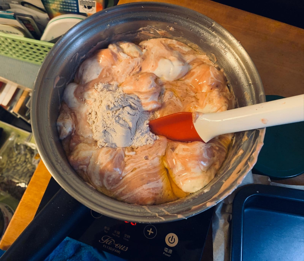 姐姐喺廚房好忙,我用個迷你電磁爐😊+細細皇后煲,要控制得個火候好好,開頭有啲失手出晒白煙!好彩家中有些焗爐用具!😄