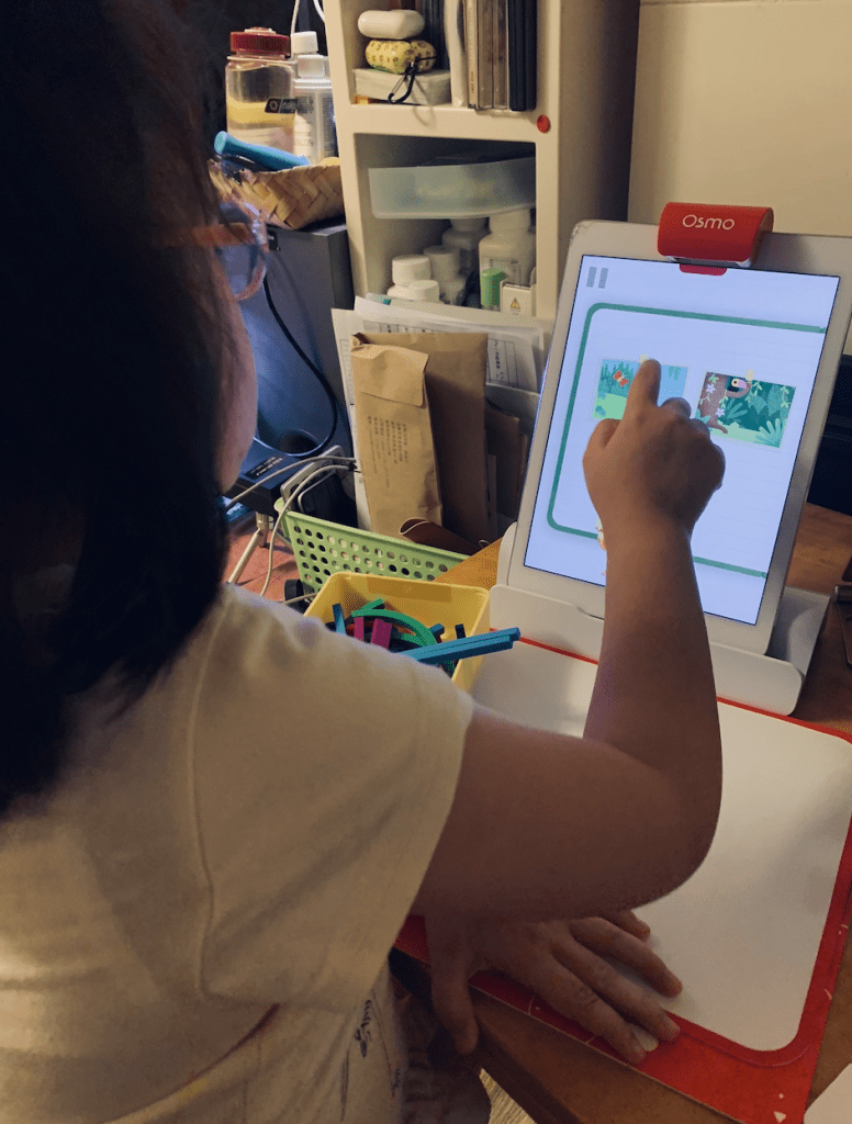 Osmo的產品基於iPad/兼容裝置(包括Amazon Fire Tablets) 而設計,該系統使用支架和夾式鏡子,使iPad或iPhone的前置攝像頭能夠識別和跟踪設備正面物理遊戲中的物體以及孩子的動作。
