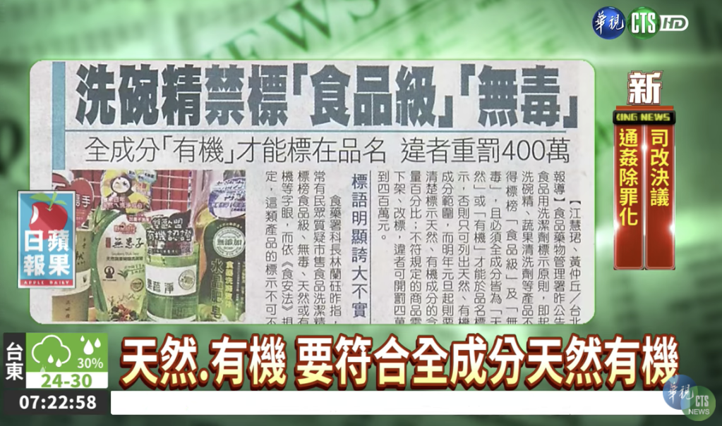 還有你知道現在除了化妝品外, 台灣衛生福利部食品藥物管理署(TFDA) 2015年規定連洗潔精都不能強調純天然或天然了嗎?