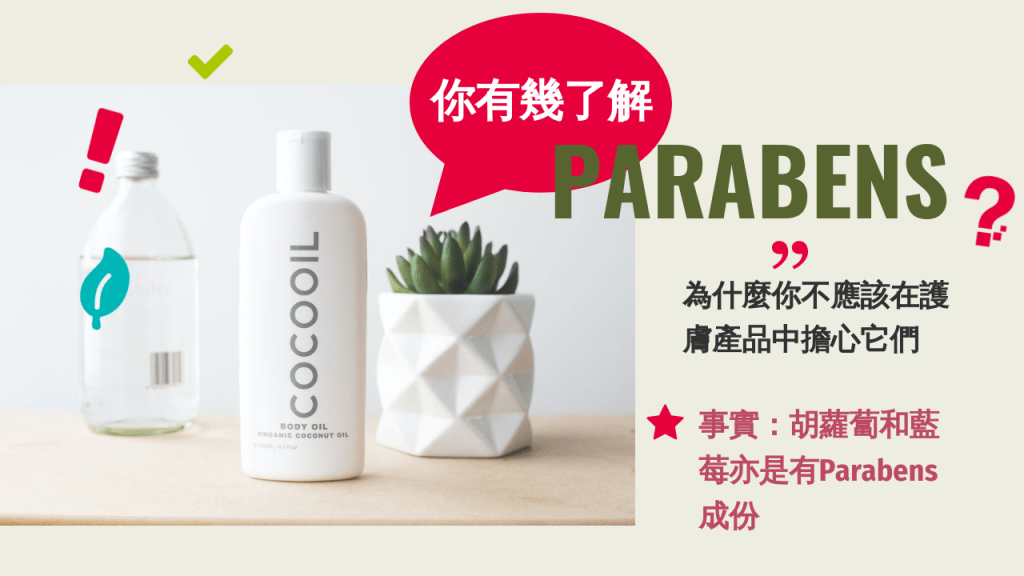 Parabens主要有butylparaben, ethylparaben, isobutylparaben, methylparaben及propylparaben。Parabens的議題至所以會出現,主要一個原因是有人誤解了2004 research study這則研究。研究人員在乳癌細胞組織中發現parabens 的代謝產物(並非parabens本身),於是他們猜測,這是與腋下香體劑含有paraben有關。但同時間,其實有其他科學家發現該研究的漏洞,並指出現今一般香體劑都不含paraben, 也不需要paraben幫助防腐【註1】。