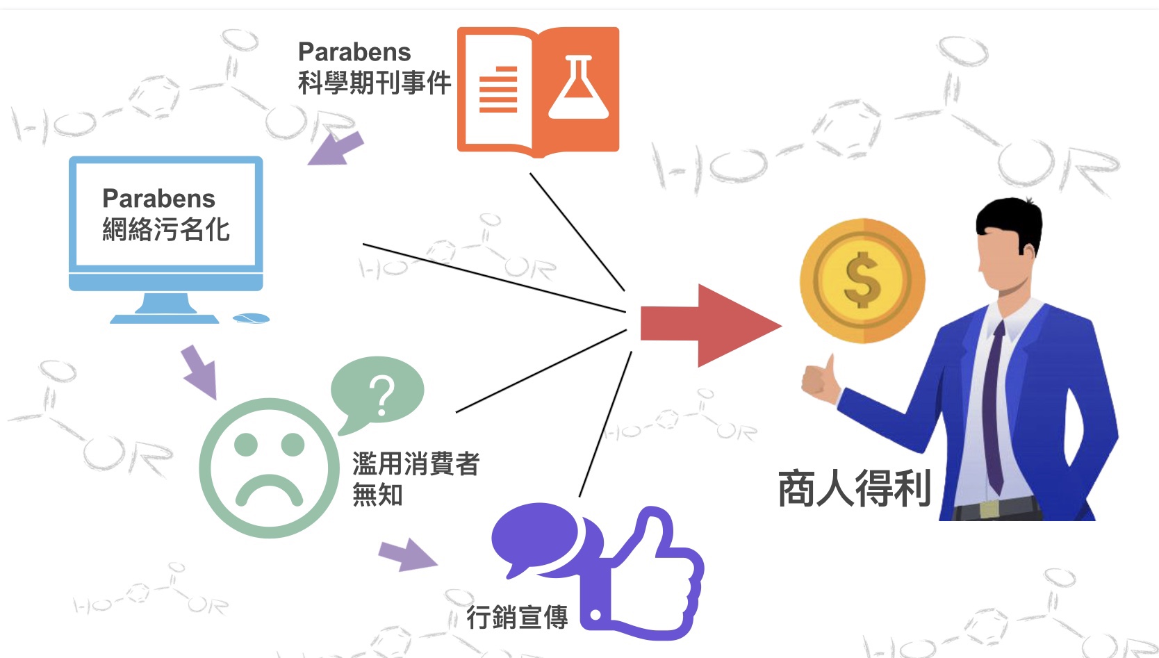 很多消費者媒體(包括選擇月刊)都將 Parabens 歸類成潛在內分泌干擾物,但不少經過審閱的獨立研究報告及國際化妝品法規組織都指,小量添加在個人護理用品的 Parabens 並不會短期或長期造成顯著的健康危害,反而真正危險的是沒有添加防腐劑的化妝及保養品。若無添加防腐劑,你的嬰兒洗頭水、嬰兒潤膚露、粉底、和保濕鹼液乳液就會被細菌及黴菌攻陷了!2016年7月消委會公布了一款「759阿信屋太陽花清爽沐浴露」檢出細菌總數超過標準上限169倍,霉菌和酵母菌總數比標準上限高28倍。消委會懷疑,產品所用的相關防腐劑分量可能不足或已經失效,導致微生物大量滋生。(到底都有用,請繼續看下文)