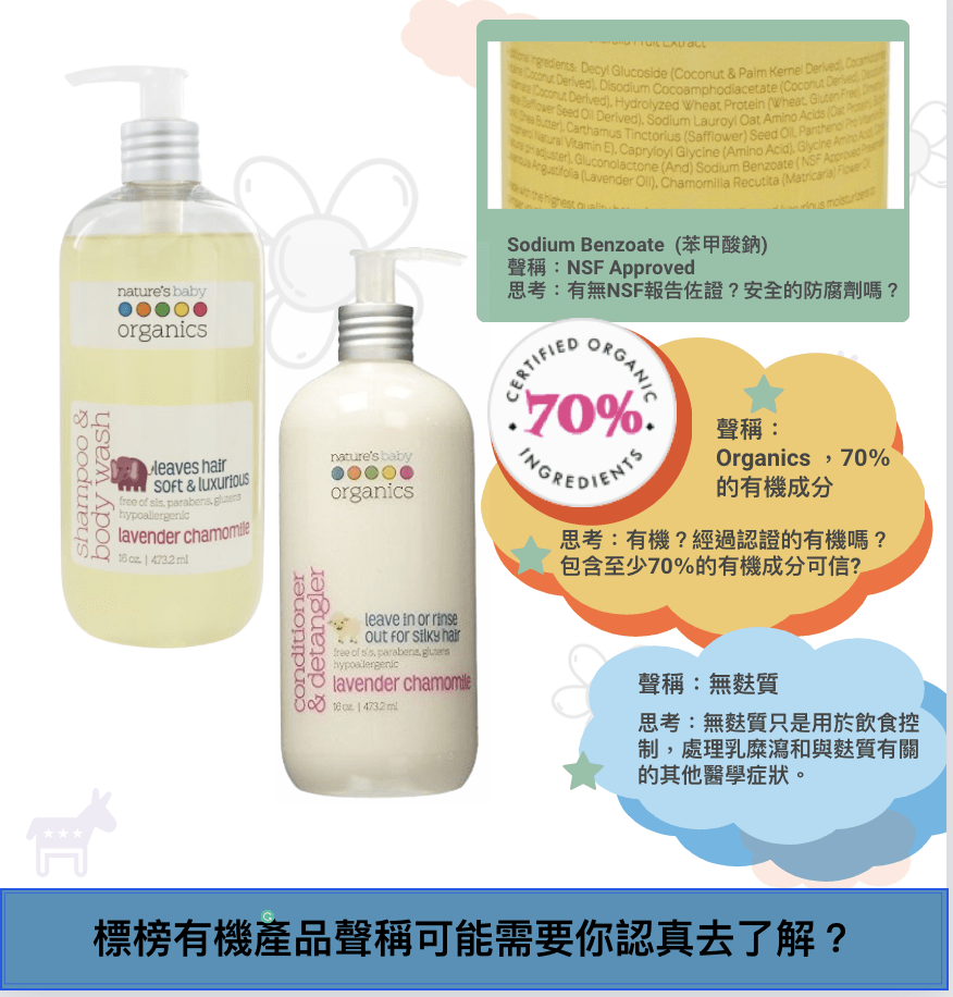 就以沐浴露為例。製造沐浴露所需的材料本身就是一種化學物,因此不可能符合「無添加化學成分」的說法。市面上產品所標榜的「無添加」很多時候都只是廠商試圖欺瞞、誤導消費者的商業手法。
