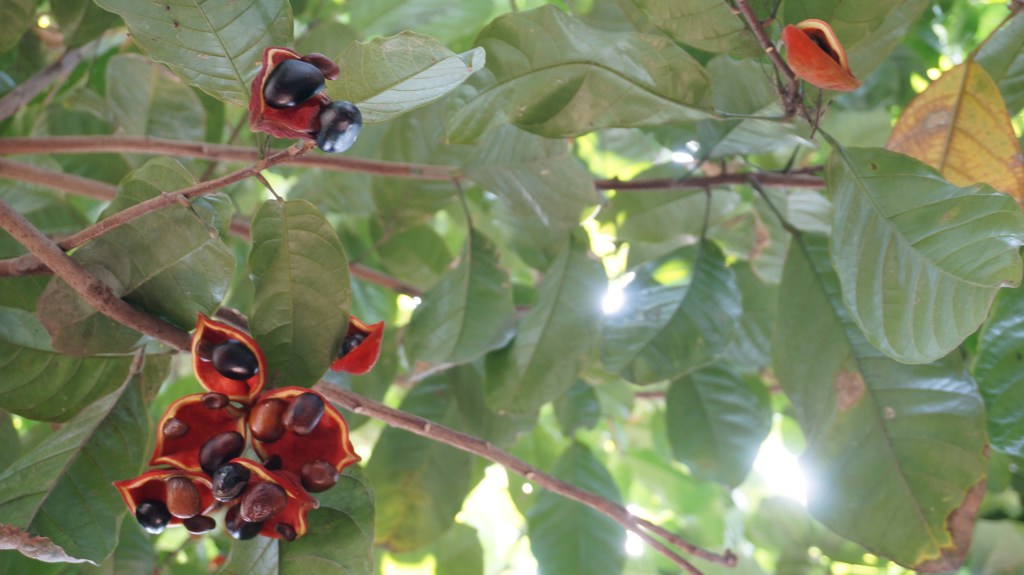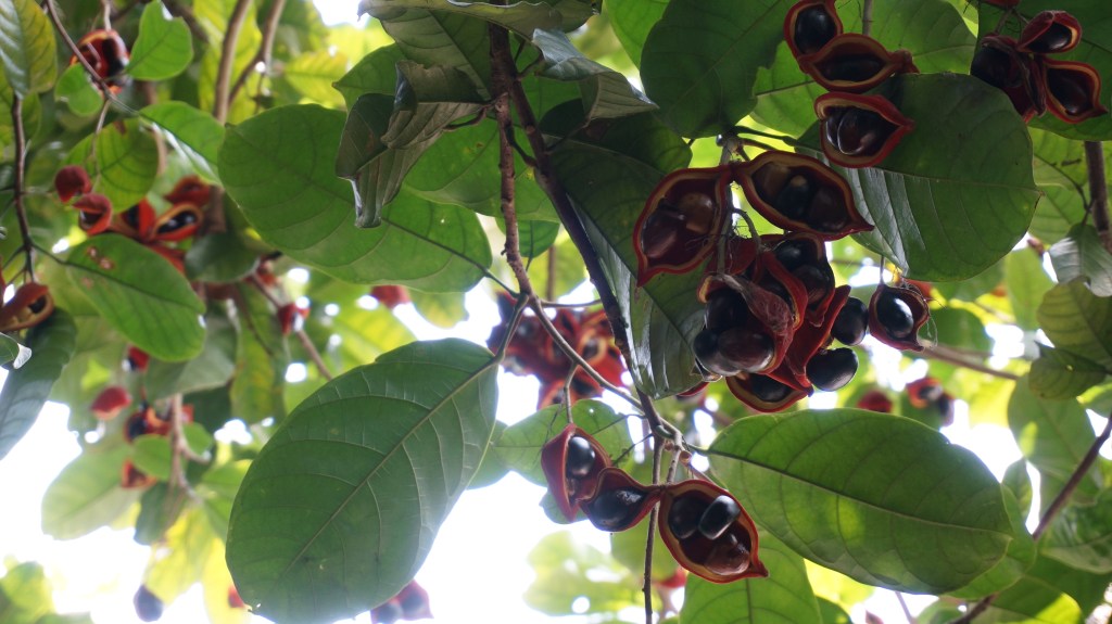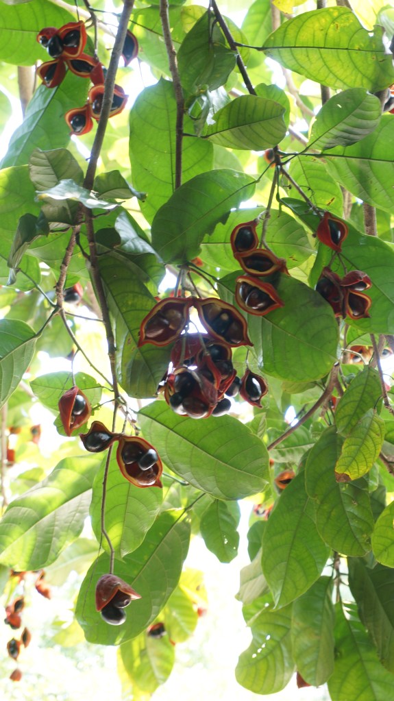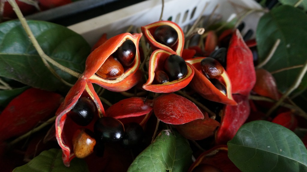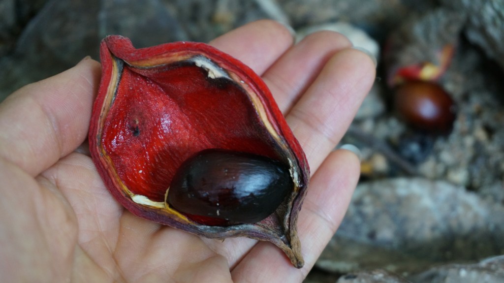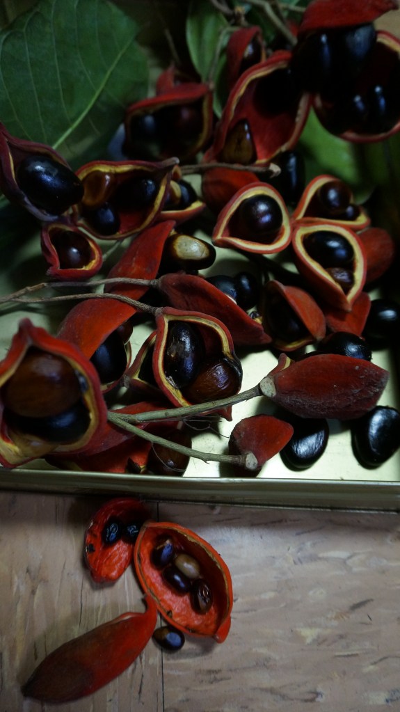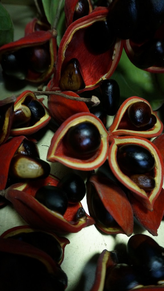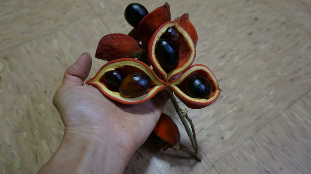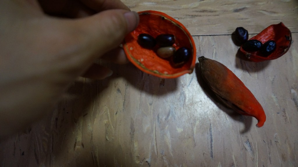 果實/種子從鮮紅的果莢中自動張開,看起來是一隻一隻的眼睛,無數的眼睛正在你們的頭頂上注視着你們。你們害怕嗎﹖