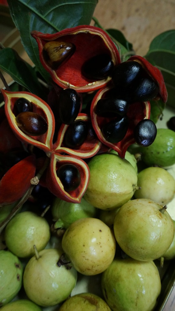 朋友家鴻也分享類似的過往經歷, 他表示以前曾遇見鳳眼果,覺得它們的樣子怪怪,心中猜想它們的味道不怎麼樣,不好吃,直至近幾天前,經他的多年夥伴兼朋友珊姐的介紹後,才有幸並重新認識它們多一些, 逐漸喜歡吃它們,感受到它們的口感像栗子一樣香滑無比。