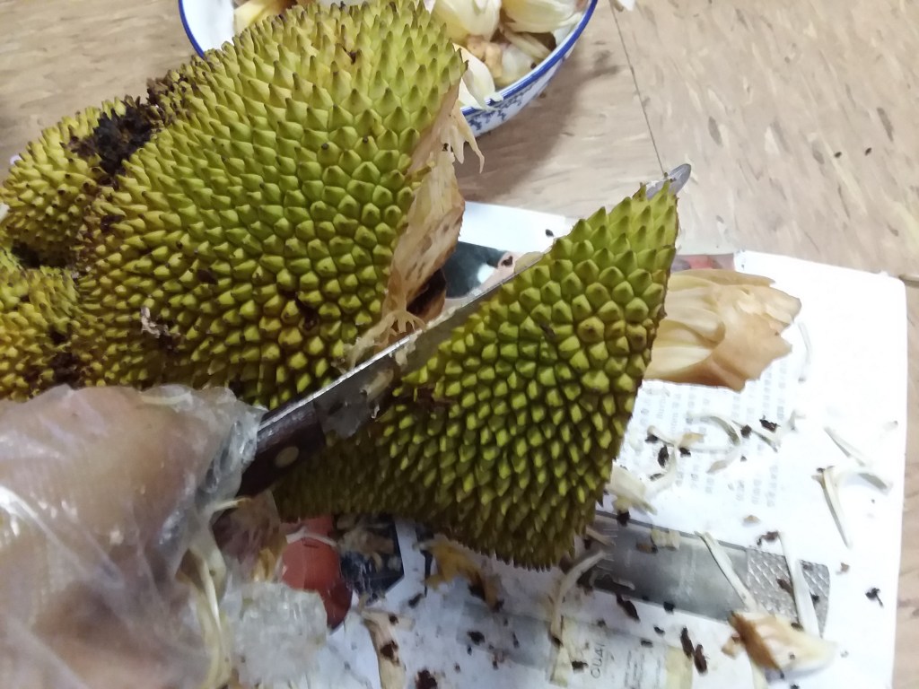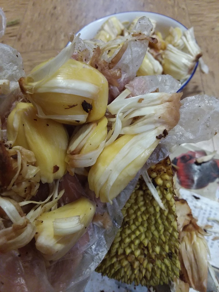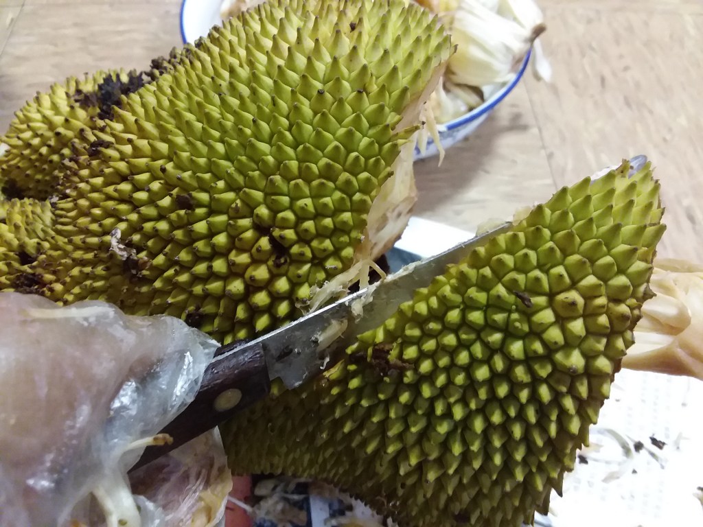 大樹菠蘿會為食客帶來一個非常棘手的問題,連我也覺得難以處理,在食用前需要花時間取出果肉。當我切開大樹菠蘿後,它會突然流出很多白色黏液,幸好,我事前準備手套,否則雙手佈滿白色黏液,如一不小心,臉上也可能會佈滿黏液,即使不停揉捏雙手,想撕走黏液也不能,想立即洗掉也洗不掉,這真的是揮之不去的艱苦工作。最好笑的是我會一邊取出果肉一邊吃果肉,嘴唇因而被粘著白色黏液,我家人看到後感到少許驚嚇,可惜是洗掉也洗不掉,黏液在我的嘴唇上保持大約一小時不變,一小時過後,多次清洗嘴唇後,終於擺脫那黏液。