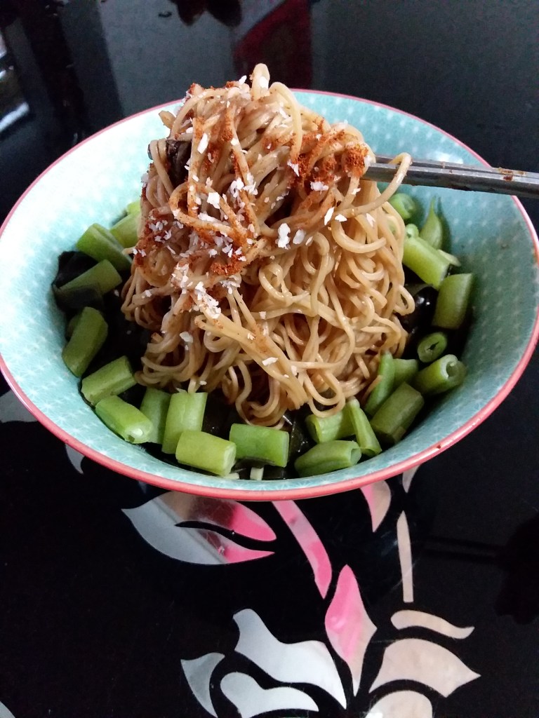 我看到他的分享後,已引起我的食慾,於是我也出一份力量,不甘後人,跟隨在後,終於可以在兩天假期中悠然地享用由我精心烹煮的兩道佳餚,麵條質感幼滑,堅韌又長,不黏不濕,吃後不會感口渴,無需喝水。