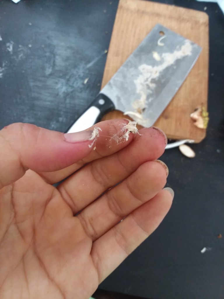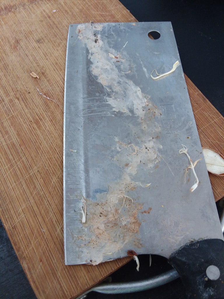 朋友家鴻也是認為那白色黏液是非常棘手的問題,難以處理、清潔和清洗,即使使用一般清潔劑,效果也不大。他稱它為「大樹菠蘿膠」,他並不明白為何它會出現在大樹菠蘿,只告訴我,它的銷售價較高昂,因為取出果肉處理不易,令大部份消費者均感不方便。