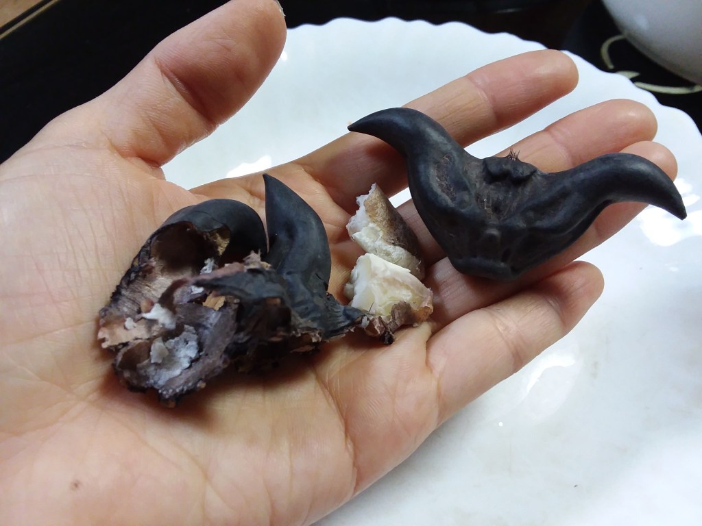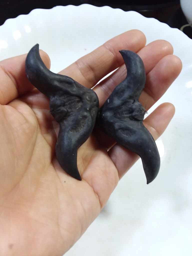 從前,我看到「菱角」的外形,覺得十分可愛又新奇又有趣,好像一隻牛的樣貌,牛頭上左右兩邊分別有一隻像露出一彎月牙的新月的牛角。我的媽媽會將很多「菱角」煮熟後,一家大小團團圓圓,聚在一起一同享用它們,我嘗試品嚐後,才能深深明白它容易被拒之門外的因由。年少的我,直至長大成現今的我,都會把它的味道及氣味形容為「牛糞」,實在難以忘懷。小時候,我吃下它的時候,表情會怪異扭曲,嘟著嘴巴,皺眉頭,用手掩著鼻子,一口一口慢慢地咀嚼,猶如茹苦含辛,因此我相信你們可想像得到,「菱角」的味道及氣味是非常臭氣沖天。