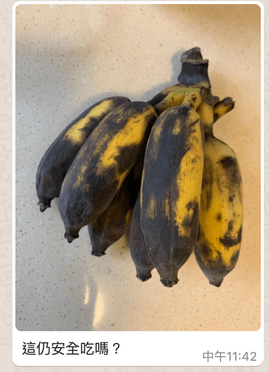 自然地, 於是這個客戶WhatsApp來跟我查詢,說這些牛奶蕉還可以吃嗎?