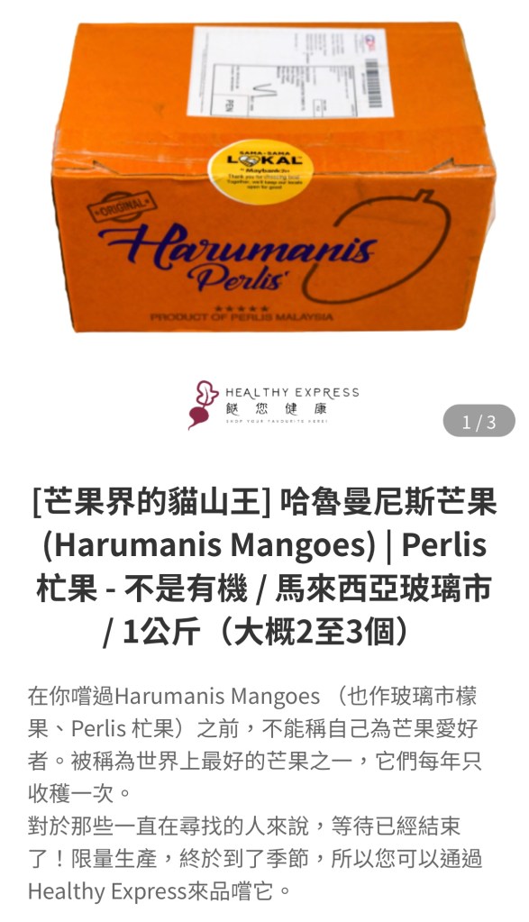 未品嚐過Harumanis Mangoes (也作玻璃市檬果、Perlis 杧果)之前,不能稱自己為芒果愛好者。被稱為世界上最好的芒果之一,也有芒果「貓山王」之稱,一來太貴,二來只有現在才有,它們每年只收穫一次。下星期會到餸您健康!